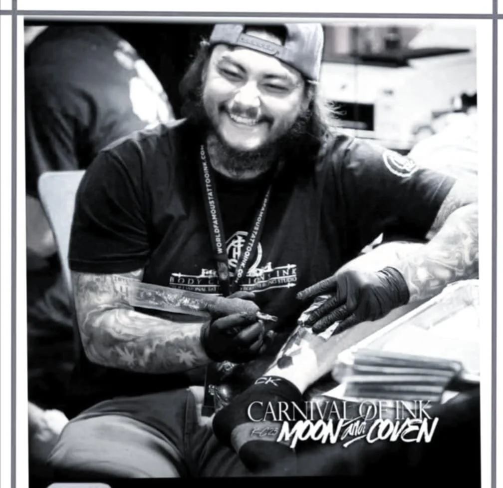 “I’m Angel, I have been tattooing for 7 years and specialize in black & gray, stippling and Chicano designs. I take art seriously and passionately.”